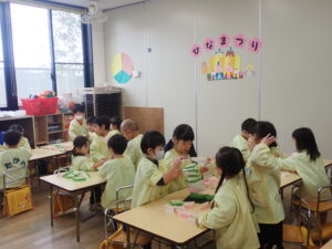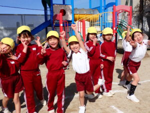 幼稚園型ですので1・2歳児では、養護の上により充実した教育を行います。 満3・3・4・5歳児では、初めての学校として就学前の質の高い体験重視の教育を行っています。