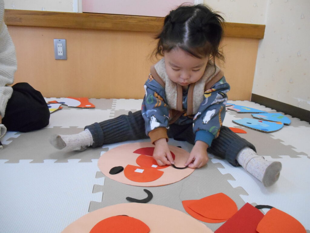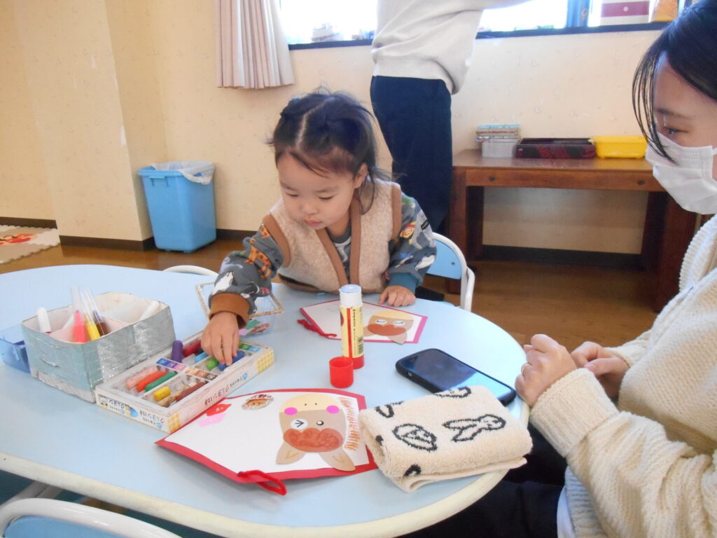 パーツを貼ったり、おえかきをしたり、思い思いに楽しんでいます♪♪